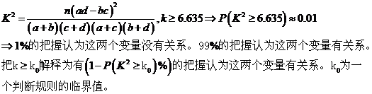 4、 两个分类变量x,y的独立性检验的依据是判断等式