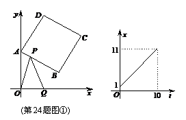 (长度单位)关于运动时间t(秒)的函数图象如图②所示,请写出点Q开始运动时的坐标及点P运动速度;