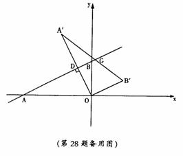 与x轴、y轴分别交于A、B两点,将△ABO绕原点O顺时针旋转得到△A´B´O,并使OA´⊥AB,垂足为D,直线AB与线段A´B´相交于点G.动点E从原点O出发,以1个单位/秒的速度沿x轴正方向运动,设动点E运动的时间为t秒.