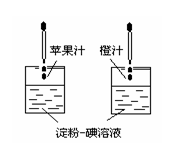 淀粉溶液是一种常用的化学试剂,他遇到碘水显蓝色。如图所示,利用维生素C能使淀粉--碘溶液褪色的性质,可以比较苹果汁和橙汁中维生素C含量的多少。要得出正确结论,实验过程中不需要进行控制的条件是····························(