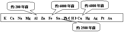(9分)金属是一种重要的材料,人类的生活和生产都离不开金属,高科技新材料的开发和应用也需要金属。下图表示了金属活动性顺序表中铜、锡、铁和铝元素被人类大规模开发、利用的大致年限。