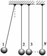 右图所示.用完全相同的轻绳将N个大小相同、质量不等的小球并列悬挂于一水平