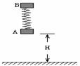 (肥西中学高三物理第二次月考试卷)如图所示,质量均为m的物块A和B用弹簧连结起来,将它们悬于空中静止,弹簧处于原长状态,A距地面高度H=0.90m,同时释放两物块,A与地面碰撞后速度立即变为零,由于B的反弹,A刚好能离开地面。若B物块换为质量为2m的物块C(图中未画出),仍将它们悬于空中静止且弹簧为原长,从A距地面高度为H’处同时释放,设A也刚好能离开地面。已知弹簧的弹性势能EP与弹簧的劲度系数k和形变量x的关系是:EP=kx2。试求:(1)B反弹后,弹簧的最大伸长量。(2)H’的大小