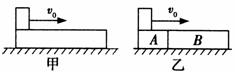 程中所受的摩擦力始终不变,现将木板分成A和B两段,使B的长度和质量均为A的2倍,并紧挨着放在原水平面上,让小铅块仍以初速度v0由木块A的左端开始向右滑动,如图乙所示,则下列有关说法正确的是 ( )