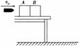入B,并同B一起运动,测得A、B落点到桌边缘的水平距离sA:sB=1:2,求子弹在砂箱A、B中穿行时系统一共产生的热量Q.