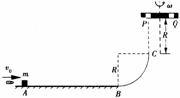 滑上半径为R的四分之一光滑圆弧BC,在C点正上方有一离C高度也为R的旋转平台,平台同一直径上开有两个离轴心等距的小孔P和Q,平台旋转时两孔均能经过C点的正上方,若要使小木块经过C后穿过P孔,又能从Q孔落下,则平台的角速度