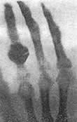 伦琴断定这是一种新射线,一种从未曾记载过的东西。伦琴用它拍出了一张肉淡骨浓的手掌照片,有人用它鉴别古画,一时引起轰动,伦琴将这具有非凡魅力的射线命名为“X”射线。