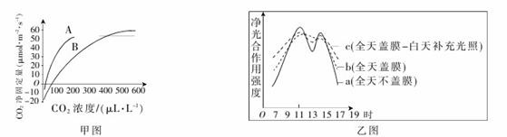 28.(10分)下面甲图表示在光照、温度等其他条件适宜的情况下,环境中CO2浓度对A、B两种植物的光合速率的不同影响。请回答: