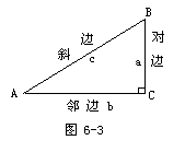 在上节课研究的基础上,引入正、余弦,“把对边、邻边与斜边的比值称做正弦、余弦”.如图6-3: