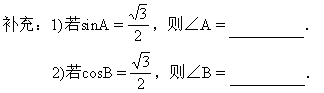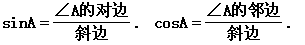 还发现Rt△ABC的两锐角∠A、∠B,sinA=cosB,cosA=sinB.正弦值随角度增大而增大,余弦值随角度增大而减小.”