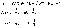 例1 求出图6-4所示的Rt△ABC中的sinA、sinB和cosA、cosB的值.