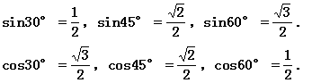让每个学生画含30°、45°的直角三角形,分别求sin30°、sin45°、sin60°和cos30°、cos45°、cos60°.这一练习既用到以前的知识,又巩固正弦、余弦的概念,经过学习亲自动笔计算后,对特殊角三角函数值印象很深刻.