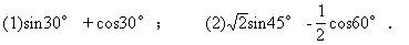 (1)sin45°+cos45; (2)sin30°·cos60°;