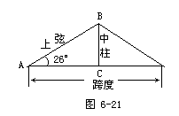 答:中柱BC约长2.44米,上弦AB约=长5.56米.