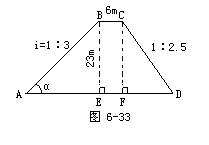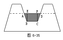 (2)利用土埂修筑一条渠道,在埂中间挖去深为0.6米的一块(图6-35阴影部分是挖去部分),已知渠道内坡度为1∶1.5,渠道底面宽BC为0.5米,求: