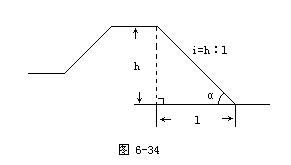 结合图6-34,教师讲述坡度概念,并板书:坡面的铅直高度h和水