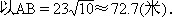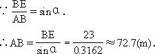 答:斜坡AB的坡角α约为18°26′,坝底宽AD为132.5米,斜坡AB的长约为72.7米.