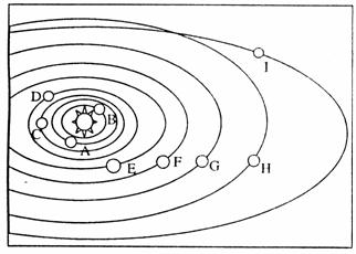 ⑵图中字母表示地球的是________;与其相邻的行星中距离太阳最近一颗是_________。