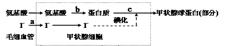甲状腺激素由甲状腺球蛋白水解而成。下图表示甲状腺细胞摄取原料合成甲状腺球蛋白的基本过程,请据图回答: