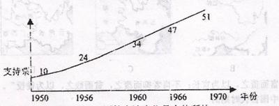 23. 读下列“历届联大讨论恢复中国在联合国的合法权利支持中国票数增长示意图”,对这一增长结果解读错误的是
