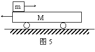 16.如图5所示,质量为20kg的平板小车的后端放有质量为10kg的小铁块,它与车之间的动摩擦因数为0.5。开始时,车以速度6m/s向左在光滑的水平面上运动,铁块以速度6m/s向右运动。(g=10m/s2) 求: