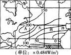 下图为某大洋部分海区年平均逐日从海洋输入大气的总热量分布图。