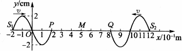 2.如下图所示,两列简谐横波分别沿x轴正方向和负方向传播,两波源分别位于x=-2×10-1 m和x=12×10-1 m处,两列波的波速均为v=0.4 m/s,两波源的振幅均为A=2cm。图示为t=0时刻两波的图象(传播方向如图),此时平衡位置处于x=0.2 m和x=0.8 m的P、Q两质点刚开始振动。质点M的平衡位置处于x=0.5 m处,关于各质点运动情况判断正确的是