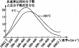 (3)如下图是氧分子在不同温度(O℃和100℃)下的速度分布规律图,由图可得出哪些结