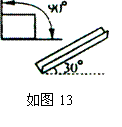 如图13所示,一直角斜槽(两槽面夹角为90°),对水平面夹角为30°,一个横截面为正方形的物块恰能沿此槽匀速下滑,假定两槽面的材料和表面情况相同,问物块和槽面间的动摩擦因数为多少?