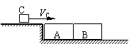 6.两块厚度相同的木块A和B,紧靠着放在光滑的水平面上,其质量分别为mA=2.0kg,mB=0.90kg,它们的下底面光滑,上表面粗糙,另有一质量mC=0.10kg的滑块C(可视为质点),以VC=10m/s的速度恰好水平地滑A的上表面,如图所示,由于摩擦,滑块最后停在木块B上,B和C的共同速度为0.50m/s.