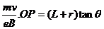 解析 :电子所受重力不计。它在磁场中做匀速圆周运动,圆心为O″,半径为R。圆弧段轨迹AB所对的圆心角为θ,电子越出磁场后做速率仍为v的匀速直线运动, 如图4所示,连结OB,∵△OAO″≌△OBO″,又OA⊥O″A,故OB⊥O″B,由于原有BP⊥O″B,可见O、B、P在同一直线上,且∠O'OP=∠AO″B=θ,在直角三角形OO'P中,O'P=(L+r)tanθ,而