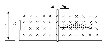 导体棒与固定弹簧相连,放在导轨上,导轨与导体棒的电阻均可忽略,初始时刻,弹簧恰处于自然长度,导体棒具有水平向右的初速度