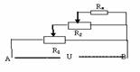 (8分)如图所示的电路,Rx为电阻500Ω的负载, R1、R2为两个用于调节负载电压的滑线变阻器,已知AB间电压为12V,Rx的工作电压为8V,两个滑线变阻器的最大阻值分别为20Ω和200Ω,则: 的作用是粗调,选择