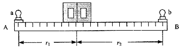 (8分)下图为一测量灯泡发光强度的装置,AB是一个有刻度的底座,两端可装两个灯泡。中间带一标记线的光度计可在底座上移动,通过观察可以确定两边灯泡在光度计上的照度是否相同。已知照度与灯泡的发光强度成正比、与光度计到灯泡的距离的平方成反比。现有一个发光强度I0的灯泡a和一个待测灯泡b。分别置于底座两端(如图)