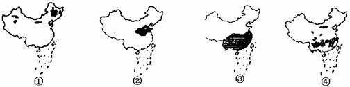 27.下面的四幅图是我国的冬小麦.油菜.水稻和甜菜的集中产区分布图,图序与下列排序一 致的是