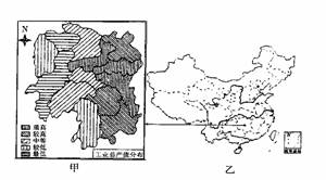 44.甲图中,工业总产值的分布状况大致与