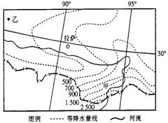 D.图中甲处等降水量线密集的主要影响是地形