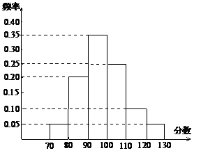 某校高三文科分为四个班.高三数学调研测试后, 随机地在各班抽取部分学生进行测试成绩统计,各班被抽取的学生人数恰好成等差数列,人数最少的班被抽取了22人.抽取出来的所有学生的测试成绩统计结果的频率分布条形图如图所示,其中120-130(包括120分但不包括130分)的频率为0.05,此分数段的人数为5人.