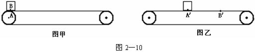 传送带对地位移x传送带=V0t,所以A、B两点分别运动到如图2-5乙所示的A'、B'位置,物体相对传送带的位移也就显而易见了,x物=