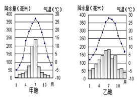 (4)根据气温、降水情况可判断甲地属于 气候,乙地则属于__