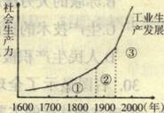 6.与右图中②对应的历史时期,社会生产力与工业生产发展迅速,其主要原因是①蒸汽机的应用②电的广泛应用③内燃机的使用④网络技术的应用