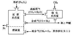 (4)制备二甲醚的合成气可由甲烷与水蒸气或二氧化碳经高温催化反应制得。合成气除制二甲醚外,还可用于冶炼金属,用它冶炼铁的生产过程可示意如下: