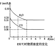(2)t℃(高于850℃)时,在相同容器中发生上述反应,容器内各物质的浓度变化如上表。①表中3min~4min之间反应处于 状态; c1数值 0.08 mol/L (填大于、小于或等于)。