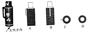 4、(2008淅江金华)在生活和生产实践中,我们经常需要运用三视图来描述物体的形状和大小。小亮在观察左边的热水瓶时,得到的左视图是( )