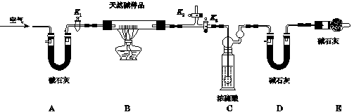②称取天然碱样品12.6 g,并将其放入硬质玻璃管中;称量装浓硫酸的洗气瓶的质量为92.6 g,装碱石灰的U形管D的质量为69.7 g。