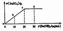8.[2009年阳泉市十五中学高三第二次理综考试化学部分]常温下,向0.1mol/L的H2SO4溶液中逐滴加入0.1mol/L的Ba(OH)2溶液,生成沉淀的质量与加入Ba(OH)2溶液的体积关系如图所示,下列说法中正确的是 ( A