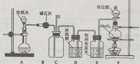 10.[豫南七校2008-2009学年度上期期末联考](13分)某学生利用以下装置探究氯气与氨气之间的反应,其A、F分别为氨气和氯气的发生装置,C为纯净干燥的氯气与氨气反应的装置。