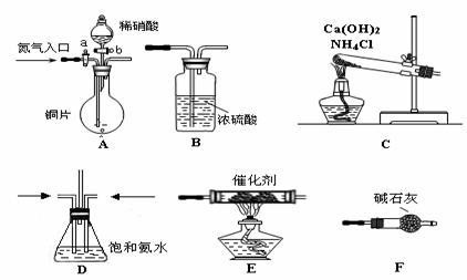 (2)将A中铜丝放入稀硝酸中,给装置A微微加热,在装置A中产生无色气体,其反应的化学方程式为 ;用F向E中鼓入空气后,可观察到烧瓶E内气体变成红棕色,产生上述现象的原因是 ;