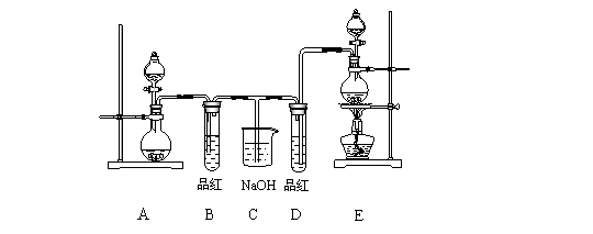 (2)反应开始后,发现B、D两个试管中的品红溶液都褪去,停止通气后,给两个试管加热,两个试管中的现象分别为B: ,D: 。