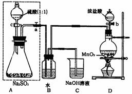 25.[2009年甘肃省河西五市二十校高三第一次联考](10分)某化学实验小组同学为了证明和比较SO2和氯水的漂白性,设计了如图所示的实验装置。![]()